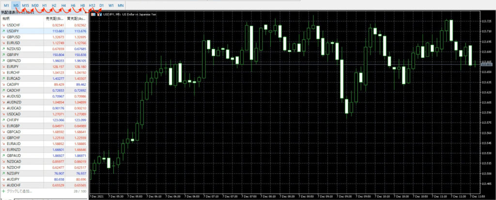 閉じましたら、以下のようにツールバーに表示される時間足も表示が増えます。